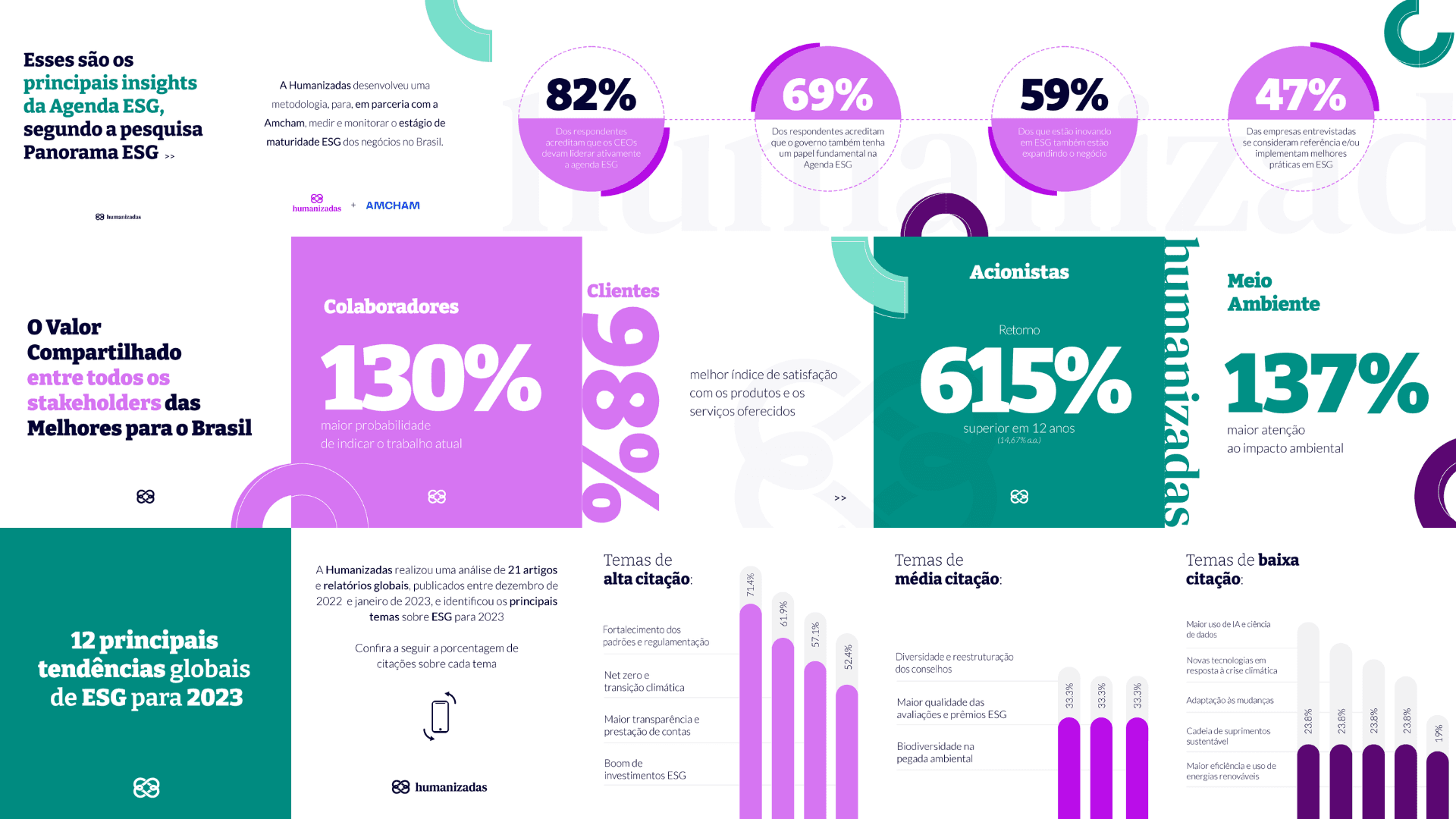Visual identity system designed to express Humanizadas' core positioning: data intelligence with human perspective. The design strategy incorporated chart-inspired elements with vibrant color palettes to communicate accessibility and warmth within technical contexts. This approach differentiates the brand within data intelligence sectors typically dominated by cold, corporate aesthetics.